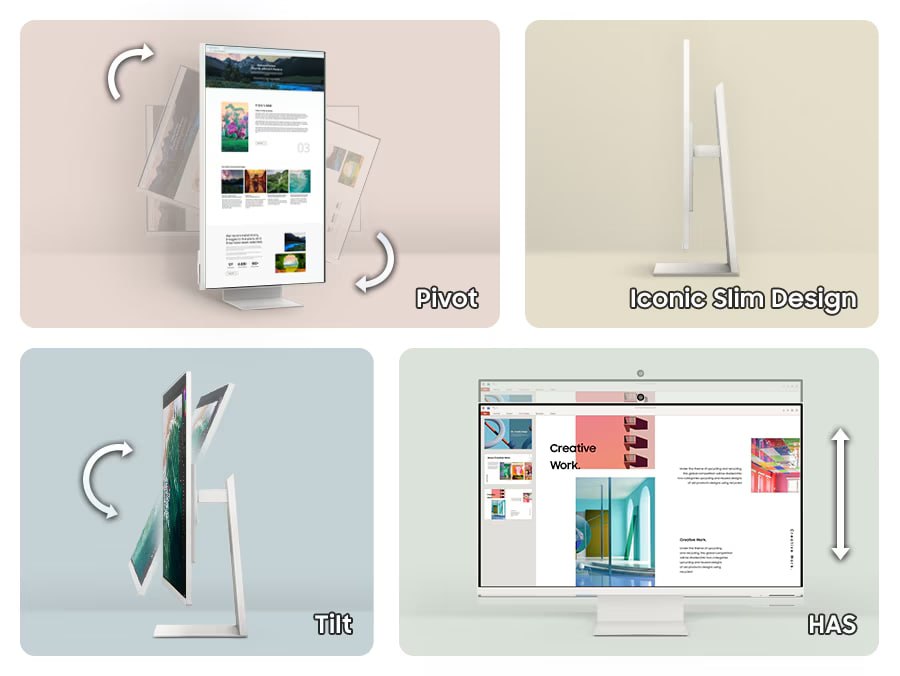 | For added comfort during long work sessions, the Samsung Smart Monitor M9 features a 4K resolution OLED panel with a Glare-Free display, designed to minimise reflections and deliver crisp visuals. Its ergonomic design helps support better posture and eye comfort, making it a thoughtful choice for those prioritising well-being at their desks. Plus, it also doubles as a Smart TV, allowing you to switch seamlessly from work to play. | ![]() |