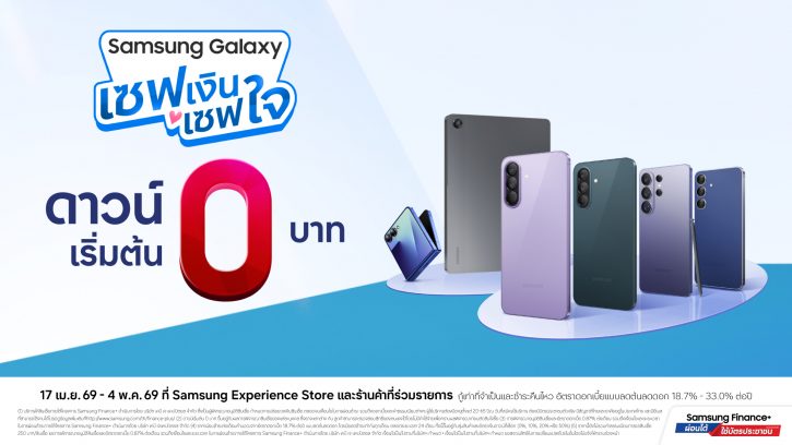 ซัมซุง เปิดแคมเปญ “ซัมซุง กาแลคซี่ เซฟเงิน เซฟใจ” ดาวน์เริ่มต้น 0 บาท ผ่อน Galaxy A57 5G ดาวน์ไม่เกิน 900 บาท พร้อมโปรฯ รุ่นอื่น ๆ อีกเพียบ!