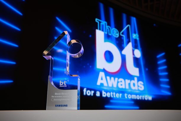 ซัมซุง คว้ารางวัล Better Tomorrow จากงาน The 1st Bt Awards ซึ่งจัดขึ้นเพื่อยกย่องเทคโนโลยีที่ช่วยยกระดับคุณภาพชีวิตและขับเคลื่อนสังคมสู่อนาคตที่ดียิ่งขึ้น ตอกย้ำความเป็นผู้นำด้านนวัตกรรม โดยมี คุณพรรณวลัย อินทราพิเชฐ ผู้อำนวยการฝ่ายการตลาดองค์กร บริษัท ไทยซัมซุง อิเลคโทรนิคส์ จำกัด เป็นตัวแทนรับรางวัล
