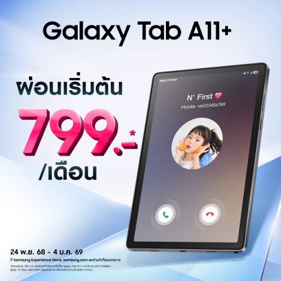 ซัมซุง ชวนเป็นเจ้าของ Galaxy Tab A11+ แท็บเล็ตรุ่นใหม่ล่าสุดได้แล้ววันนี้ พร้อมรับฟังก์ชันครบเครื่องทั้งโทรออก รับ–ส่ง SMS ได้ แบตอึด ใช้งานลื่นไหล ดีไซน์พรีเมียมทันสมัยบาง–เบา พกพาสะดวก ในราคาที่คุ้มค่า พร้อมโปรโมชันสุดพิเศษช่วงเปิดตัว อีกทั้งยังรองรับการอัปเดตซอฟต์แวร์สูงสุดถึง 7 เวอร์ชัน และอัปเดตความปลอดภัยนาน 7 ปี มั่นใจได้ว่าใช้งานได้ยาวนาน ไม่ตกเทรนด์ ตอบโจทย์ทั้งการเรียน การทำงาน และความบันเทิงในทุก ๆ วัน