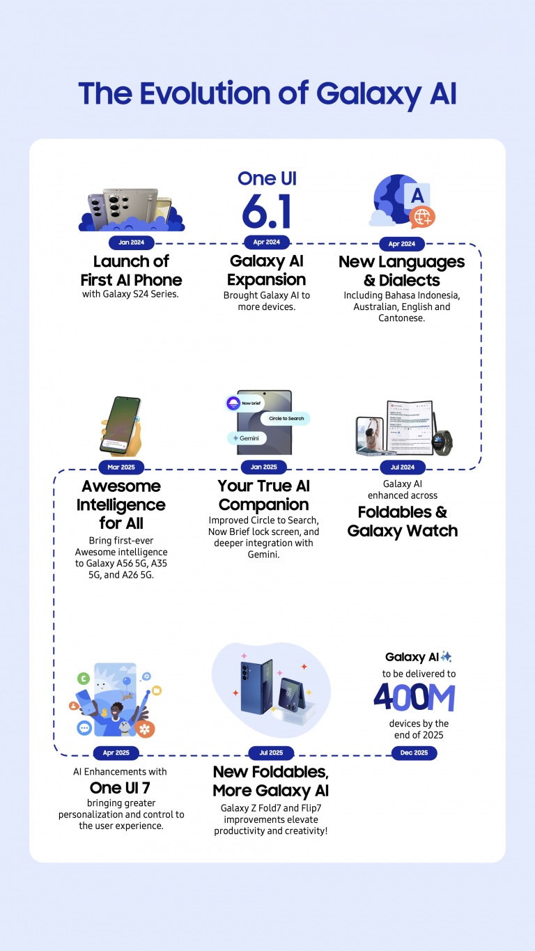 วิวัฒนาการของ Galaxy AI เป็นสัญลักษณ์ของความมุ่งมั่นเชิงกลยุทธ์ของซัมซุงในการเป็นผู้นำคลื่นนวัตกรรมครั้งใหม่ในเทคโนโลยีสำหรับผู้บริโภค ไม่เพียงแค่ในภูมิภาคเอเชียตะวันออกเฉียงใต้และโอเชียเนียเท่านั้น แต่ยังในระดับโลกอีกด้วย ตั้งแต่การเปิดตัวอย่างเป็นทางการกับซีรีส์ Galaxy S24 ในเดือนมกราคม 2024 Galaxy AI ได้ขยายขอบเขตอย่างรวดเร็ว โดยเปลี่ยนจากฟีเจอร์เฉพาะสำหรับเรือธงมาเป็นระบบอัจฉริยะที่ผสานอยู่ในอุปกรณ์ Galaxy หลากหลายรุ่นอย่างกว้างขวาง