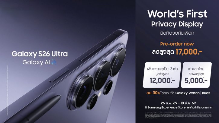 สามารถดูรายละเอียดโปรโมชันเพิ่มเติมได้ทาง https://smsngshop.com/s26-preorder-pr