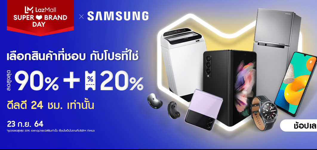 เตรียมตัวให้พร้อมกับโปรโมชั่นสุดคุ้มแห่งปี กับ Lazada Super Brand Day ลดทั้ง Samsung Flagship Store สูงสุด 90% พร้อมโค้ดลดเพิ่มสูงถึง 20% 23 กันยายนนี้ วันเดียวเท่านั้น!!!