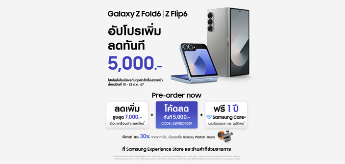 พับครองเมือง! ซัมซุงประกาศอัปโปรเพิ่มรับเลยส่วนลด 5,000 บาท สั่งจองล่วงหน้า Galaxy Z Fold6 l Z Flip6 พร้อมรับสิทธิพิเศษ 3 ต่อ