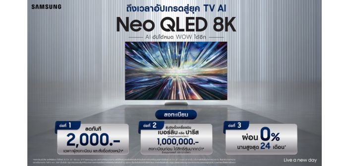 ถึงเวลาอัปเกรดสู่ยุค AI TV! ซัมซุงเปิดตัว AI TV รุ่น Neo QLED 8K ที่ภาพชัดขึ้นและฉลาดขึ้น พร้อมอัปเกรดประสบการณ์ความบันเทิงสุดล้ำที่ไม่เคยเกิดขึ้นมาก่อน