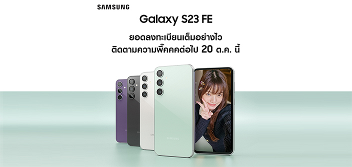 ยอดลงทะเบียนความสนใจเร็วแรงทะลุกาแล็คซี่! เต็มภายใน 3 ชั่วโมงเท่านั้น กับ Galaxy S23 FE สมาร์ทโฟนแฟลกชิปราคาสบายกระเป๋า วางจำหน่ายอย่างเป็นทางการ 20 ต.ค. นี้ พร้อมโปรเปิดตัวแบบพี๊คคคๆ!