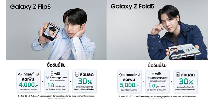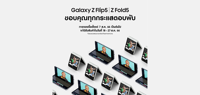 พับกันทั้งกาแลคซี่! Galaxy Z Flip5 และ Z Fold5 ยอดจองพุ่ง 2 เท่า วางจำหน่ายอย่างเป็นทางการแล้ว พร้อมกับโปรโมชั่นสุดพิเศษ ตั้งแต่วันนี้ – 3 กันยายนนี้ เท่านั้น