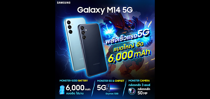 ซัมซุงเปิดตัว Monster ตัวใหม่ Samsung Galaxy M14 5G แบตอึด 6,000mAh 5G สุดคุ้ม มาพร้อมกับ ชิปเซ็ต Exynos1330 หน้าจอขนาด 6.6 นิ้ว ในราคาเพียง 6,499.-