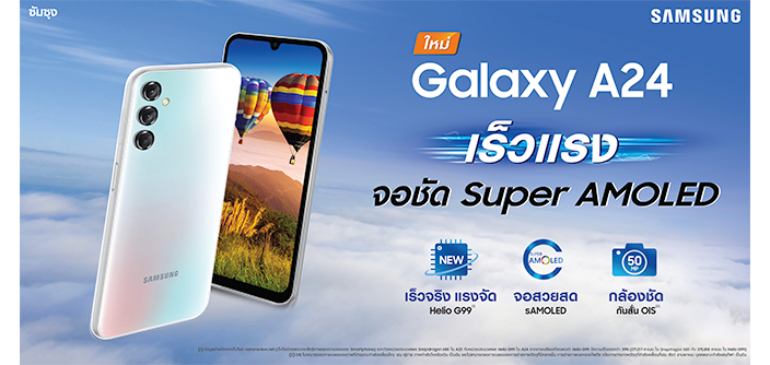 ซัมซุงเปิดตัว Samsung Galaxy A24 เร็วแรง จอสวยคมชัด Super AMOLED สเปคแรง สุด AWESOME มาพร้อมกับชิปเซ็ต MediaTek Helio G99 ที่เร็วแรงทันใจ! ในราคาเพียง 7,999