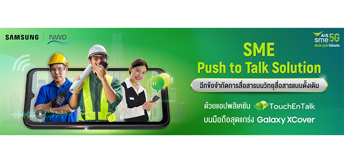 ฉีกกรอบการสื่อสารผ่านวิทยุแบบเดิมๆ พร้อมยกระดับให้การติดต่อในองค์กรง่ายขึ้น ด้วย “TouchEnTalk” แอปพลิเคชันวิทยุเพื่อการสื่อสารบน Samsung Galaxy XCover ผ่านเครือข่าย AIS 5G/4G จาก SME Push to Talk Solution