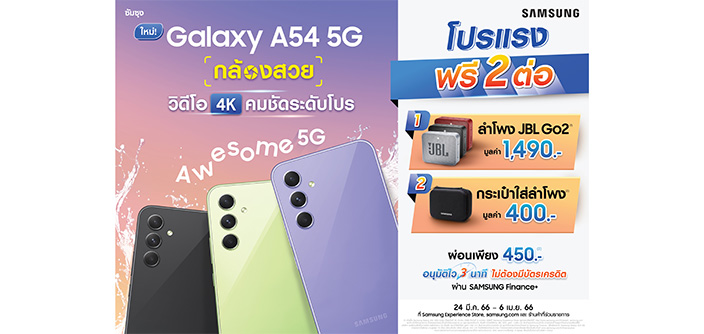 ซัมซุง Galaxy A54 5G ตอกย้ำความ AWESOME กับยอดจองทะลุเป้า! พร้อมส่งโปรสุดคุ้มอย่างต่อเนื่อง วางขายอย่างเป็นทางการ วันที่ 24 มีนาคมเป็นต้นไป!!