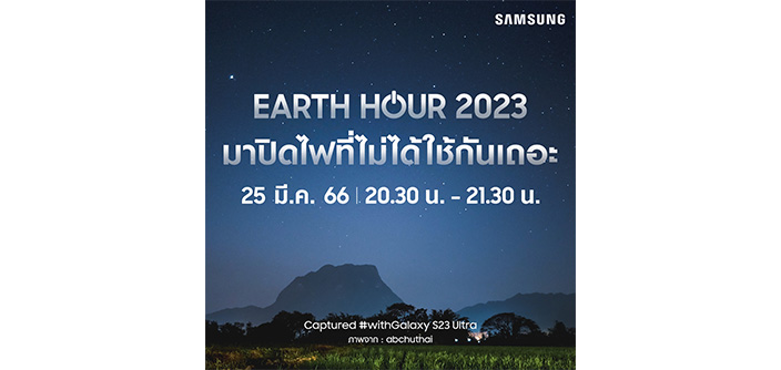 ซัมซุงเชิญชวนคนไทยร่วมเป็นส่วนหนึ่งในการรักษ์โลก ปิดไฟ 1 ชั่วโมง 25 มี.ค.นี้ พร้อมแชร์ภาพความสวยงามในที่แสงน้อยภายใต้คอนเซ็ปต์ “เมืองไทยในยามค่ำคืน” ด้วย Galaxy S23 Ultra สวยชัดชนะทุกแสง