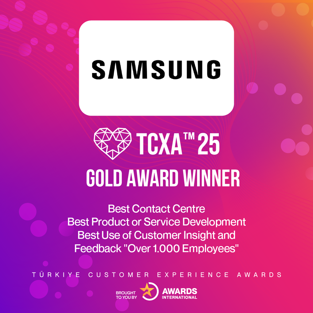 Samsung Electronics Türkiye, Türkiye Müşteri Deneyimi Ödülleri (TCXA) 2025 kapsamında “Müşteri Görüşü ve Geri Bildiriminin En İyi Kullanımı”, “En İyi Ürün veya Hizmet Geliştirme” ve “En İyi İletişim Merkezi” kategorilerinde birinci seçilerek üç Altın Ödül’e layık görüldü.