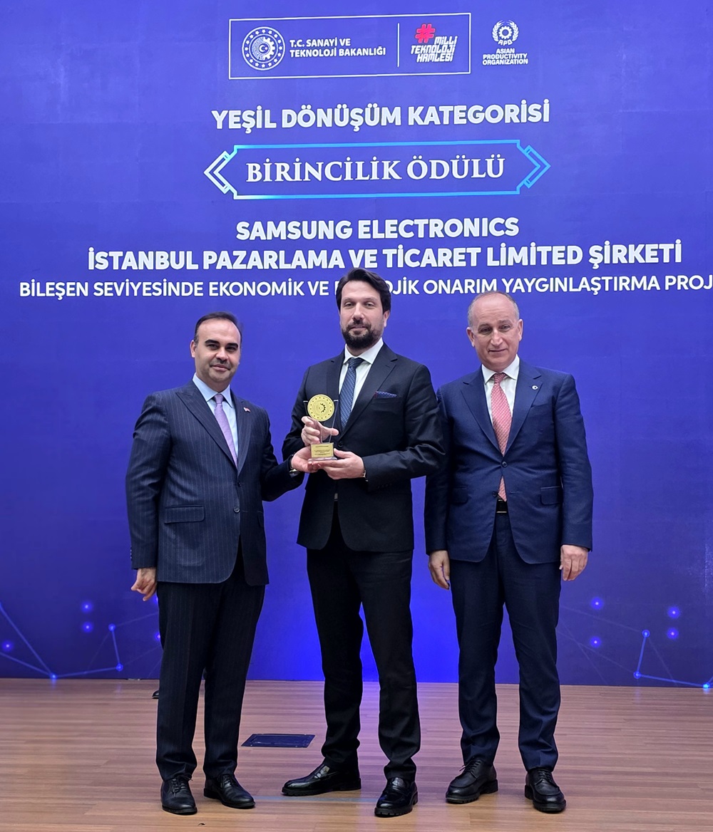 Samsung Türkiye, sürdürülebilirlik ve müşteri memnuniyetini odağına alarak hayata geçirdiği Çevreye Duyarlı Onarım Yaygınlaştırma Projesi ile Sanayi ve Teknoloji Bakanlığı tarafından verilen 10. Verimlilik Proje Ödülleri’nde “Yeşil Dönüşüm” kategorisinde Birincilik Ödülü’ne layık görüldü.