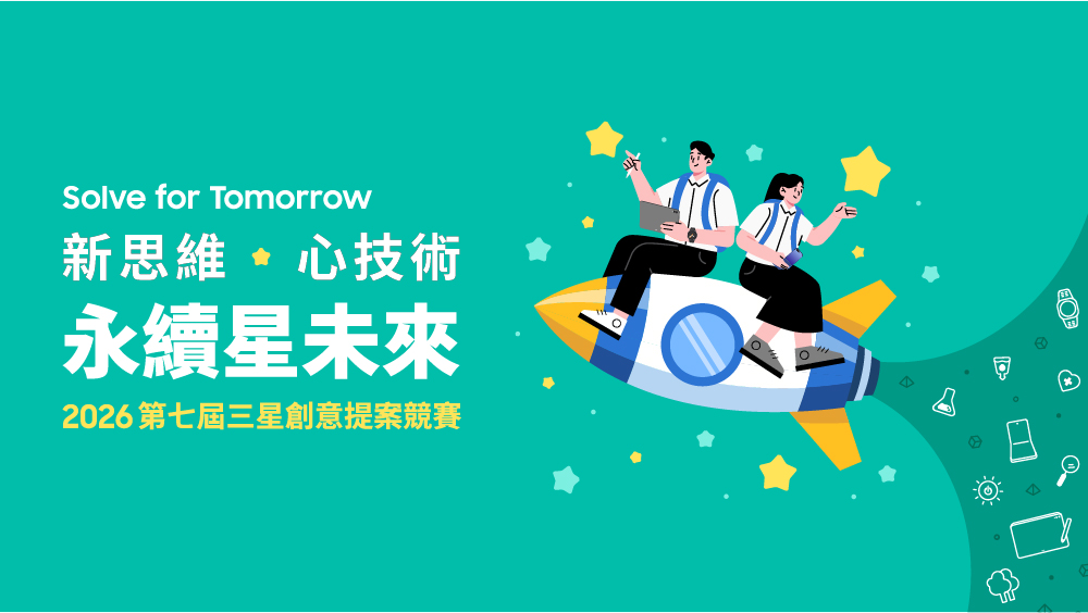 註二:詳細參賽資格、競賽內容及活動相關辦法,以活動官網訊息為主。若因實際狀況調整競賽相關安排,恕不另行通知。官網預計2月中旬上線(https://www.samsung.com/tw/offer/2026-samsung-solve-for-tomorrow)。