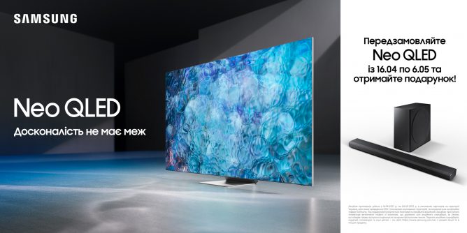 Телевізори Samsung Neo QLED виходять на український ринок: встигніть зробити попереднє замовлення й отримайте в подарунок саундбар