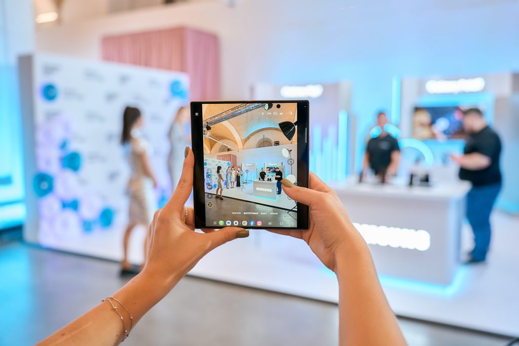 - 360-зона з подіумом, де гості знімали свої образи на Galaxy Flip7 та миттєво редагували фото й відео за допомогою AI;