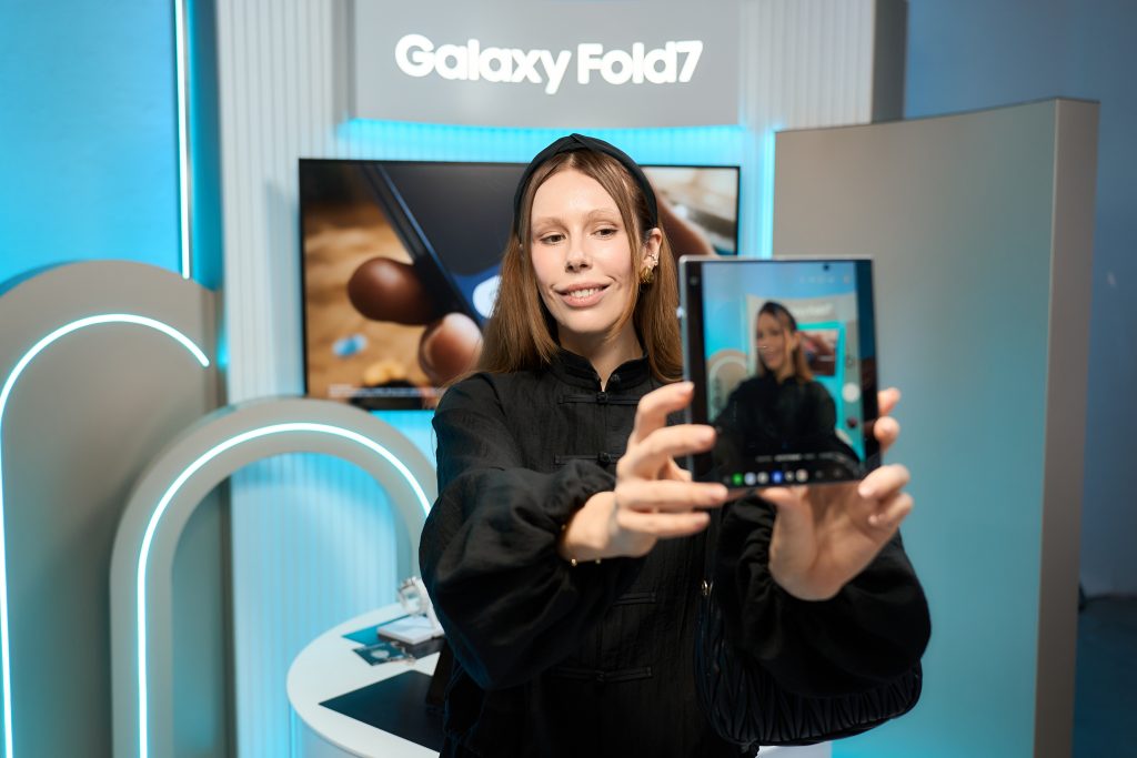 - Фотозона, де гості робили світлини на Galaxy Fold7, ділилися ними в Instagram та брали участь у розіграші трьох призів: смартфона Galaxy Flip7 та двох сертифікатів для покупок на сайті офіційного інтернет-магазину samsung.com/ua.
