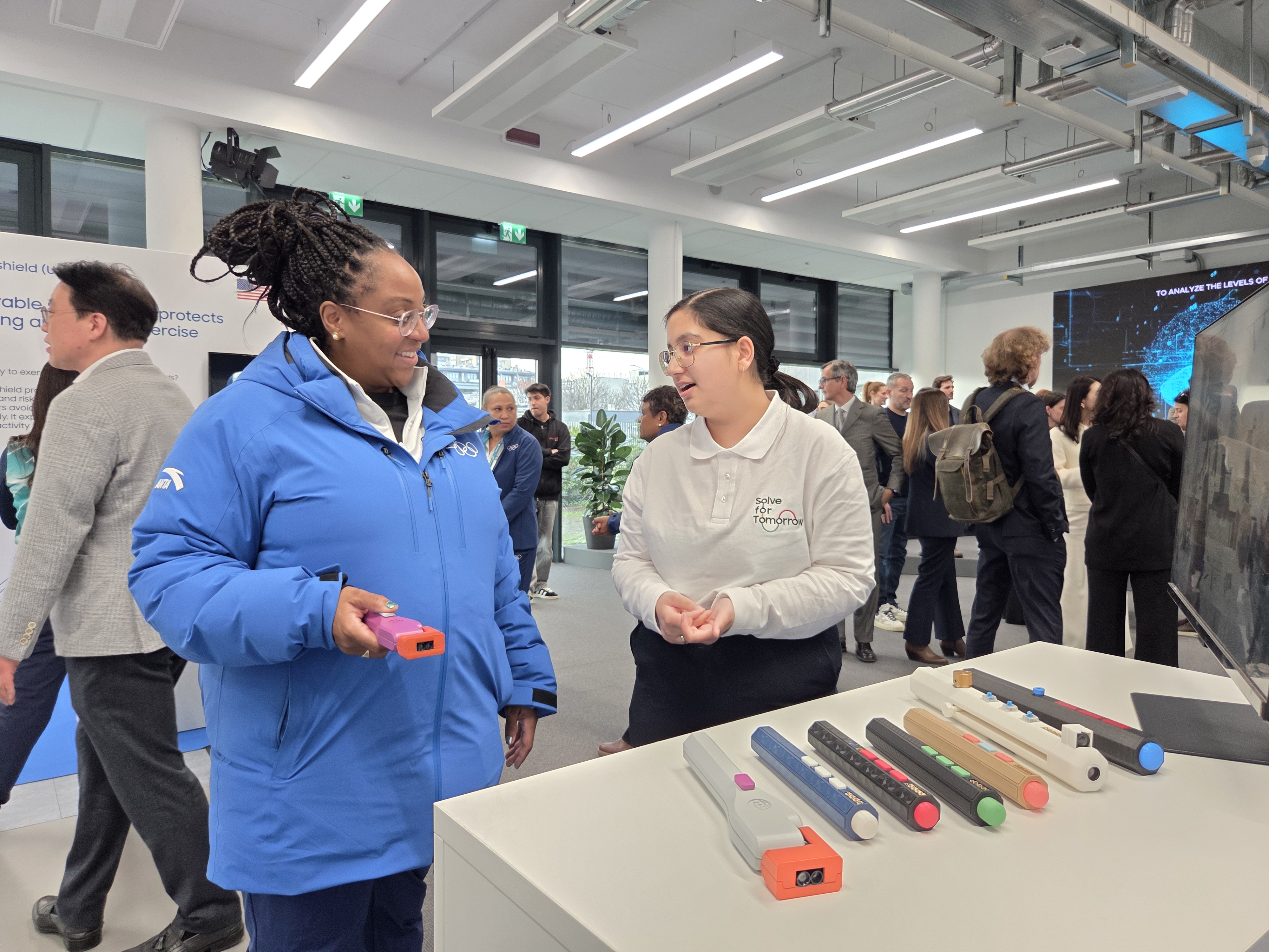 Former Solve for Tomorrow UK winner and member of the first cohort of Solve Ambassadors, Ramneek Kaur Ahluwalia, exhibited her project, MyVision – a tech-forward mobility aid designed to empower people with visual impairments. Ramneek, who has a visual impairment herself said “Partnering with Samsung to bring MyVision to life has been an amazing experience. I am thrilled to showcase my first physical prototype, demonstrating how this technology can truly transform the lives of the visually impaired community globally.”