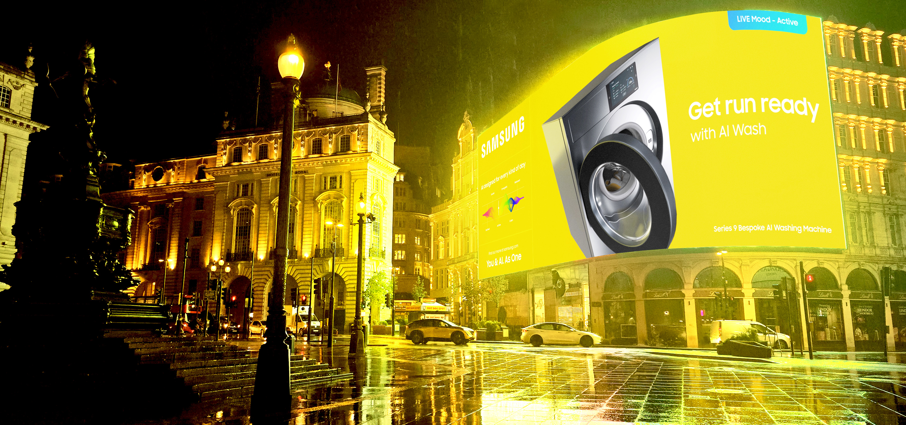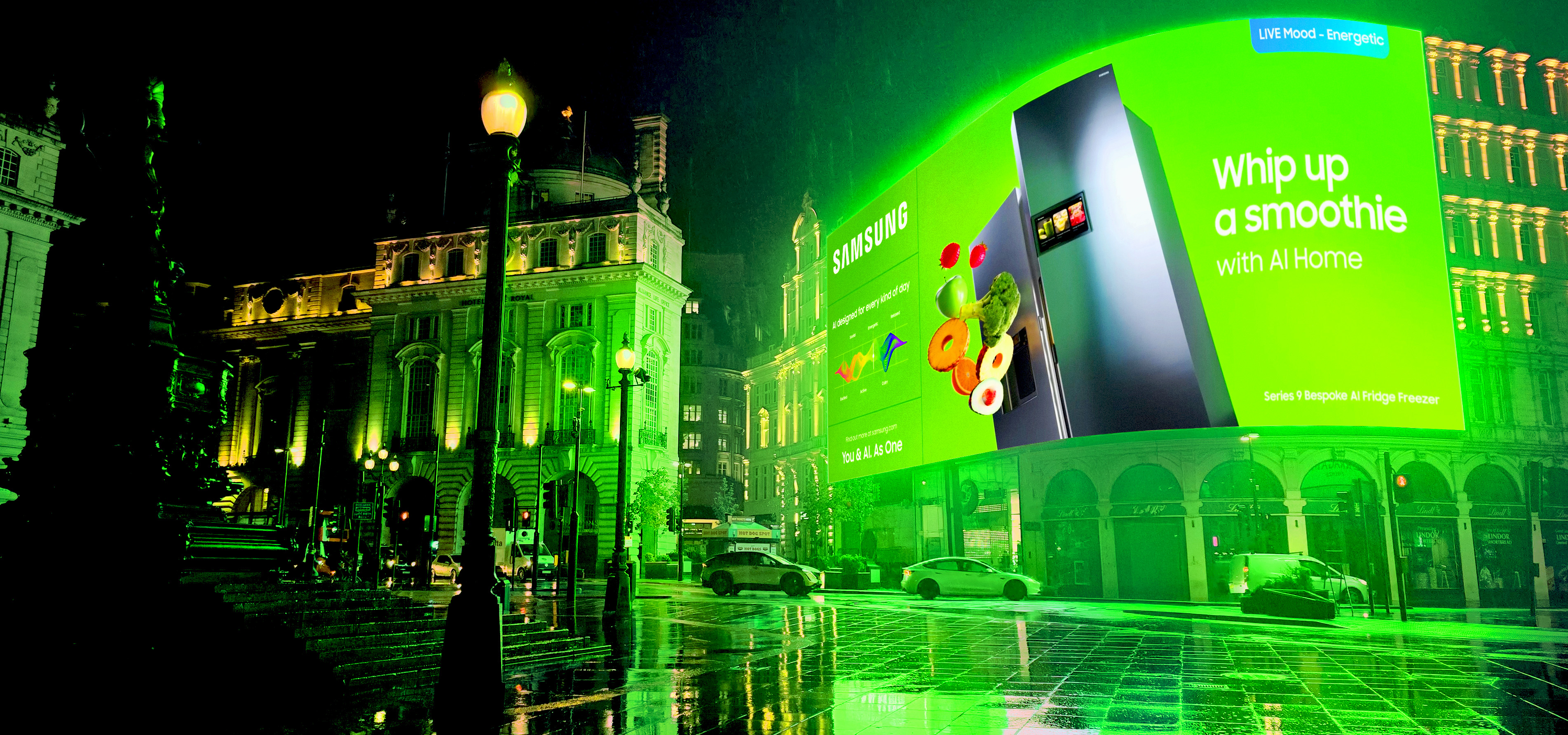 The activation uses real-time environmental and behavioural data to turn the natural energy of Piccadilly Circus into dynamic, mood-based creative. The result is a living digital canvas that mirrors the changing rhythm of the city and reflects Samsung’s belief that technology should adapt to meet people’s desires.