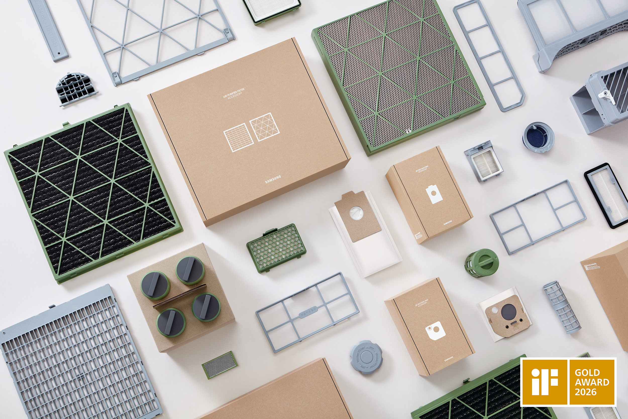 Advanced Design Concepts for Appliance Accessories – named as ‘Samsung Home Appliances Accessories’ designated three colours for accessories such as filters for vacuum cleaner and air purifiers – depending on their maintenance requirements and disposal methods. Through this design improvement, users can more easily recognise the needs of their accessories, especially if they have changed or been updated.
