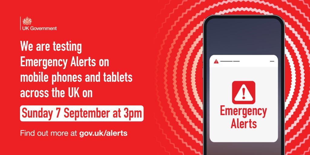 Regular testing ensures the system is functioning correctly, should it need to be used in a life-threatening emergency. Find out more at gov.uk/alerts.