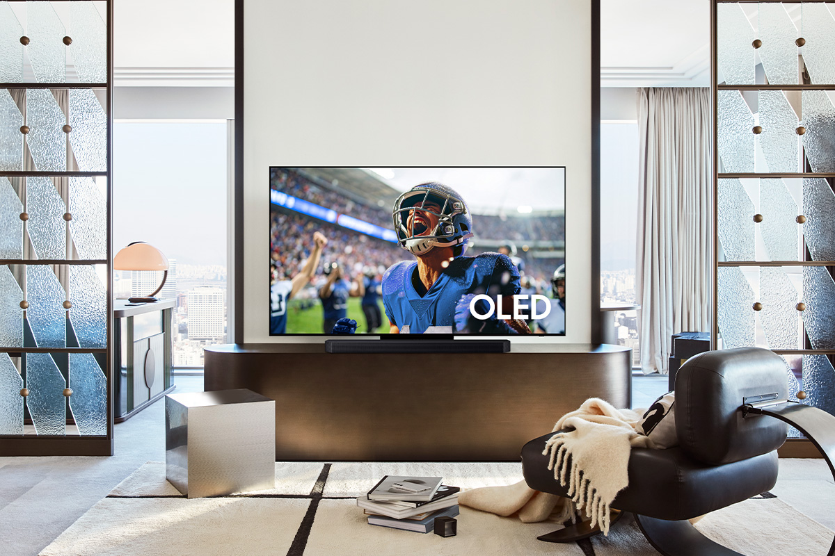 Bright rooms and daytime games can create distracting reflections, but Samsung TVs with our award-winning Glare Free technology are built to tackle glare, so you always stay immersed in whatever you watch. And in 2025, we expanded our Glare Free technology to multiple TV series, including our OLED (S95F), Neo QLED 4K (QN90F) and Neo QLED 8K (QN990F, QN900F) series.