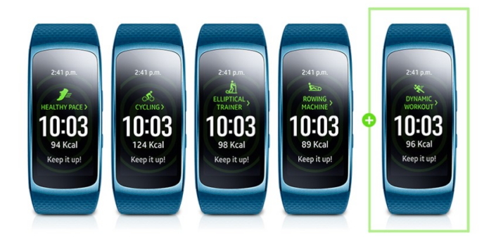 Gear Fit2 theo dõi các hoạt động thể dục bằng bộ cảm biến chuyển động, chính vì thế khi một hoạt động thể dục được diễn ra lâu hơn 10 phút, Gear Fit2 sẽ nhận biết hoạt động đó là một hoạt động mạnh (Dynamic Workout). Ngoài ra, thiết bị này còn có khả năng ghi nhận nhiều hoạt động thể dục phổ biến và hấp dẫn khác cùng một lúc nhằm tạo cho người dùng một sự thích thú, linh hoạt, tạo động lực nhằm tối ưu hóa khả năng tập thể dục theo hướng họ thích.