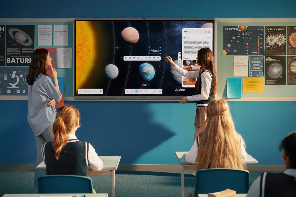Sắp ra mắt tại khu vực SEAO, dòng màn hình tương tác Samsung WAFX-P sẽ mở ra kỷ nguyên mới cho giáo dục tương tác. Với AI tích hợp và công nghệ nhận diện mực kỹ thuật số, giáo viên và học sinh có thể khoanh tròn ghi chú viết tay trực tiếp trên màn hình và chạm vào biểu tượng tìm kiếm để truy cập kết quả web, hình ảnh và nhiều nội dung khác — hoàn toàn không cần gõ văn bản.