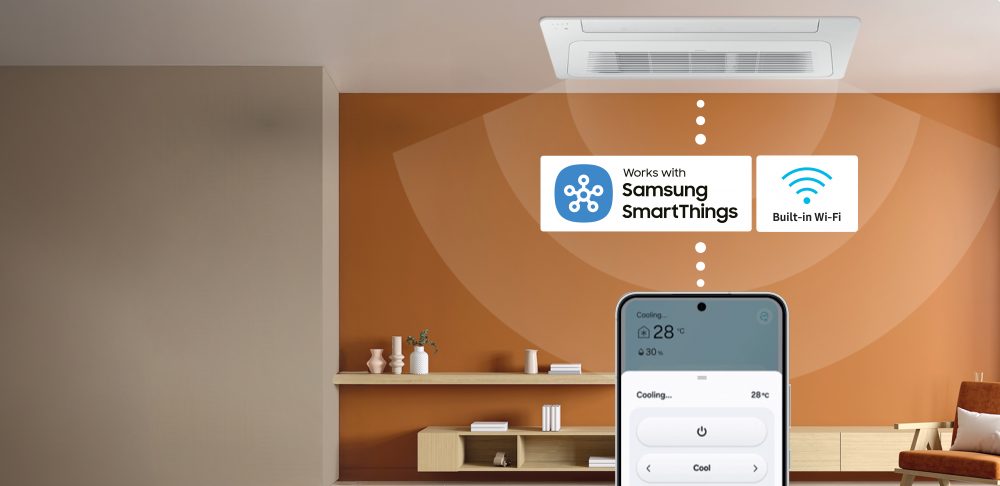 Dễ dàng điều khiển điều hòa WindFree Cassette 1 hướng bằng ứng dụng Samsung SmartThings.