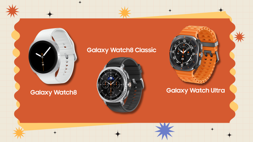 - Galaxy Watch8 và Galaxy Watch8 Classic nằm trong những mẫu đồng hồ thông minh có thể hỗ trợ người dùng duy trì thói quen chăm sóc sức khỏe trong sinh hoạt hằng ngày tốt nhất. Với thiết kế siêu mỏng và trải nghiệm đeo thoải mái, bộ đôi này mang đến hiệu suất bền bỉ và phong cách thời thượng suốt cả ngày dài. Các tính năng theo dõi sức khỏe chuyên sâu như Chỉ số Chống oxy hóa (Antioxidant Index), Huấn luyện viên giấc ngủ (Sleep Coaching) và Điểm năng lượng (Energy Score)[5] sẽ cung cấp những phân tích thực tiễn – trong khi công nghệ AI giúp việc quản lý tập luyện và theo dõi lịch trình trở nên vô cùng đơn giản. Riêng với những người yêu thích nét thiết kế sang trọng, Galaxy Watch8 Classic còn sở hữu vòng xoay bezel vật lý, mang lại vẻ ngoài cổ điển và đẳng cấp.