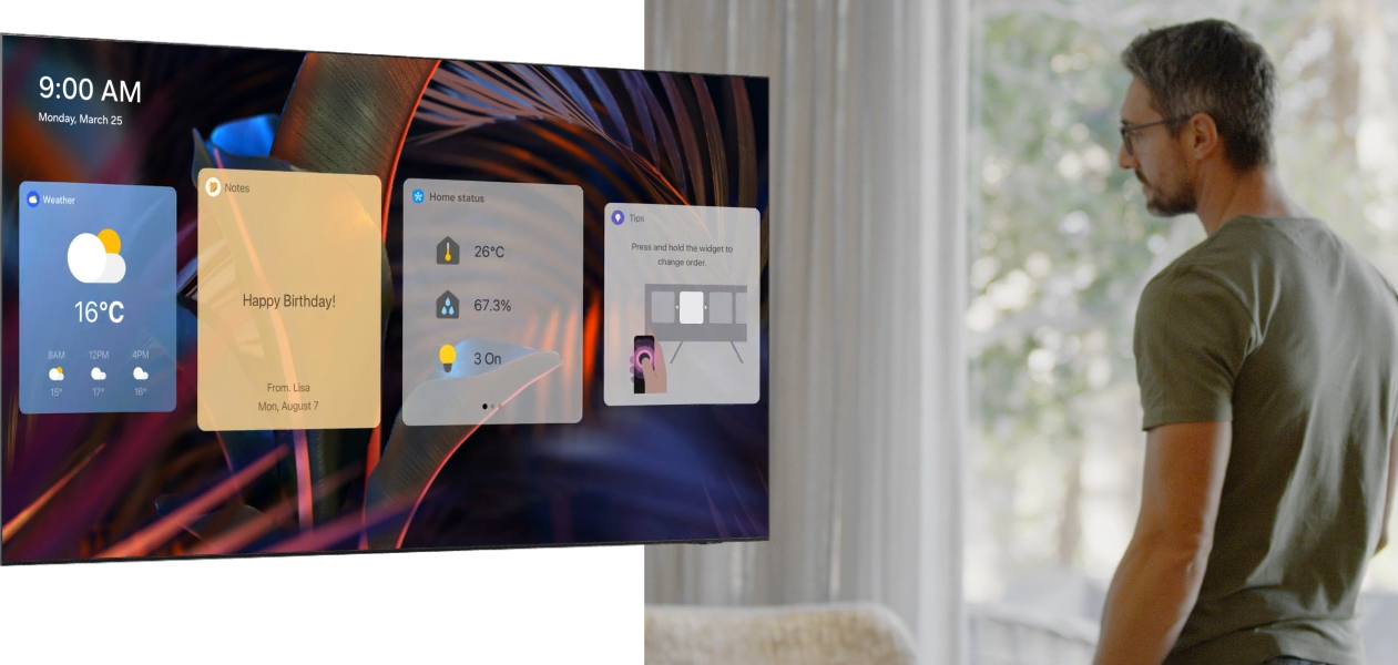 [4] Các tiện ích (widget) được hỗ trợ có thể khác nhau tùy theo khu vực. Có thể phát nhạc từ ứng dụng Spotify trên điện thoại khi kết nối với TV.
