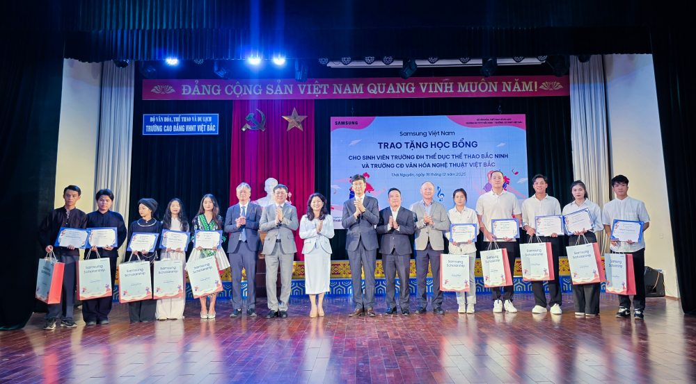 Ngày 18 tháng 12 năm 2025, tại Thái Nguyên, Samsung Việt Nam phối hợp cùng Bộ Văn hóa, Thể thao và Du lịch (Bộ VH,TT&DL) trao tặng học bổng cho sinh viên trong lĩnh vực văn hóa, thể thao và du lịch của hai trường: Đại học Thể dục Thể thao Bắc Ninh và trường Cao đẳng Văn hóa Nghệ thuật Việt Bắc – Thái Nguyên nhằm khuyến khích và hỗ trợ cho những sinh viên có hoàn cảnh khó khăn và đạt thành tích tốt trong học tập và rèn luyện, góp phần vào sự phát triển nguồn nhân lực cho ngành văn hóa, thể thao và du lịch của Việt Nam. Tham dự sự kiện có bà Nguyễn Phương Hòa – Cục trưởng Cục Hợp tác Quốc tế, Bộ VH, TT & DL. Về phía Samsung Việt Nam, có ông Na Ki Hong – Tổng Giám đốc Samsung Việt Nam; ông Kim Yong Sup – Phó Tổng Giám đốc Samsung Việt Nam.
