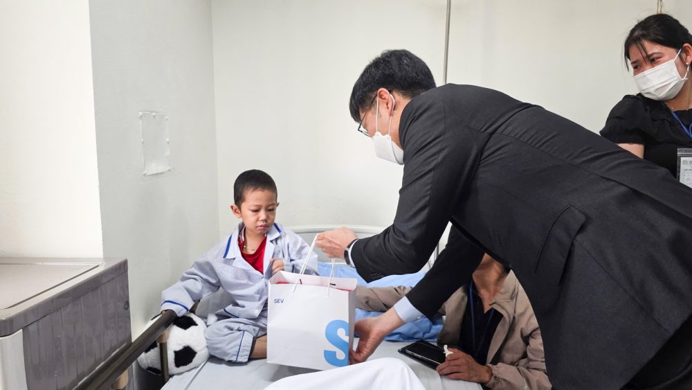 Ông Na Ki Hong- Tổng Giám đốc Samsung Việt Nam tặng quà động viên bệnh nhân