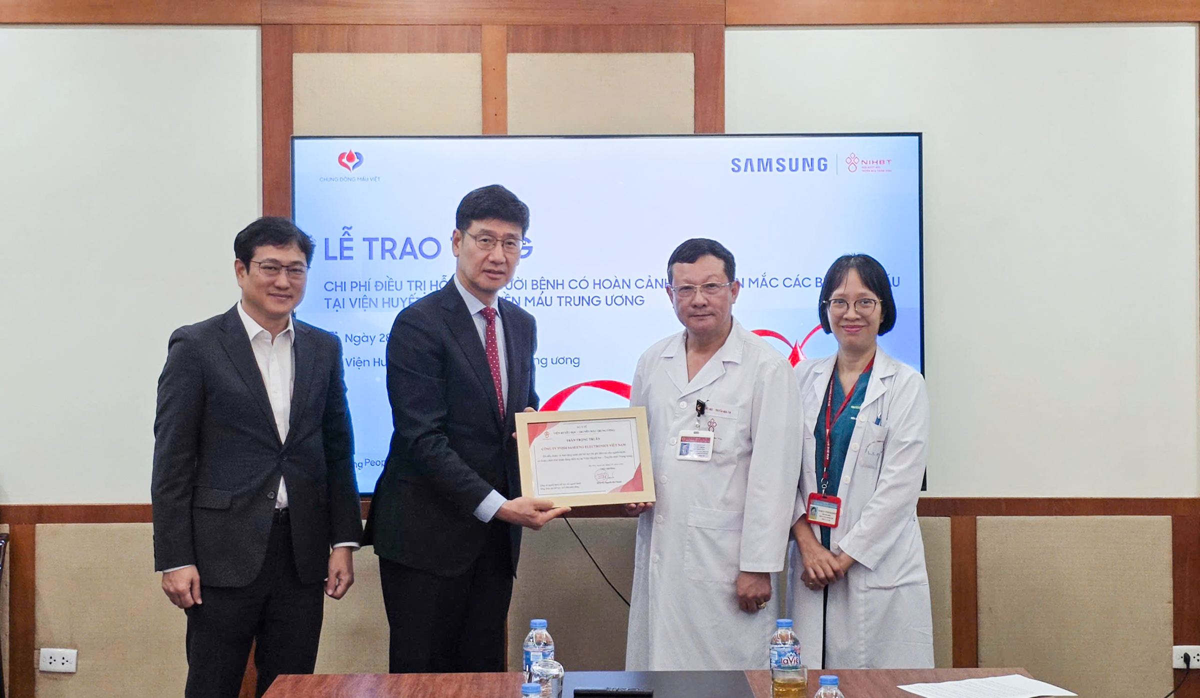Ngày 28 tháng 1 năm 2026, Samsung Việt Nam phối hợp cùng Viện Huyết học – Truyền máu Trung ương tổ chức Lễ trao tặng Chi phí điều trị hỗ trợ người bệnh có hoàn cảnh khó khăn mắc các bệnh về máu tại Viện Huyết học – Truyền máu Trung ương nhằm đồng hành cùng các bệnh nhân vượt qua khó khăn. Năm nay là năm thứ 10 Samsung Việt Nam thực hiện hoạt động này.