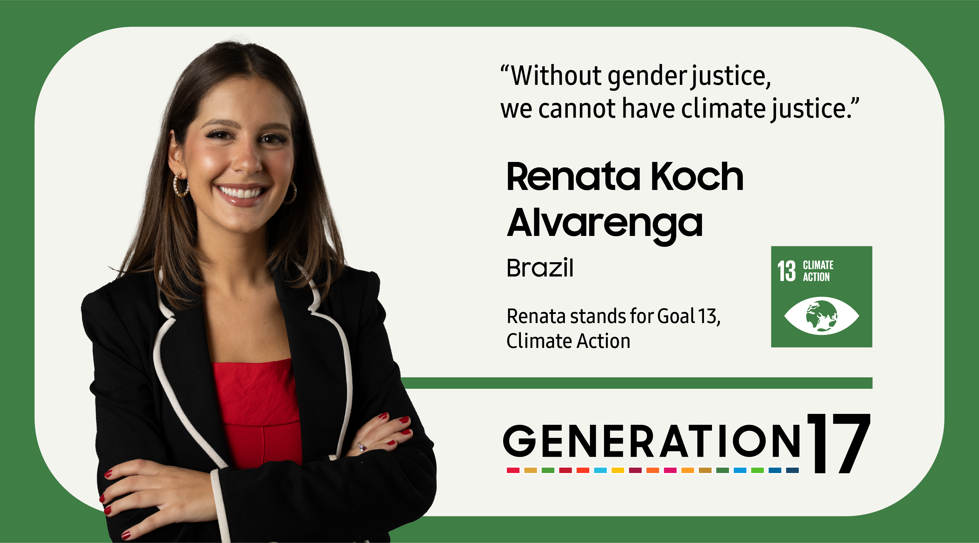 Renata Koch Alvarenga is a member of Generation17, a partnership between Samsung and the United Nations Development Programme (UNDP) that empowers young people driving progress on the 17 Global Goals.